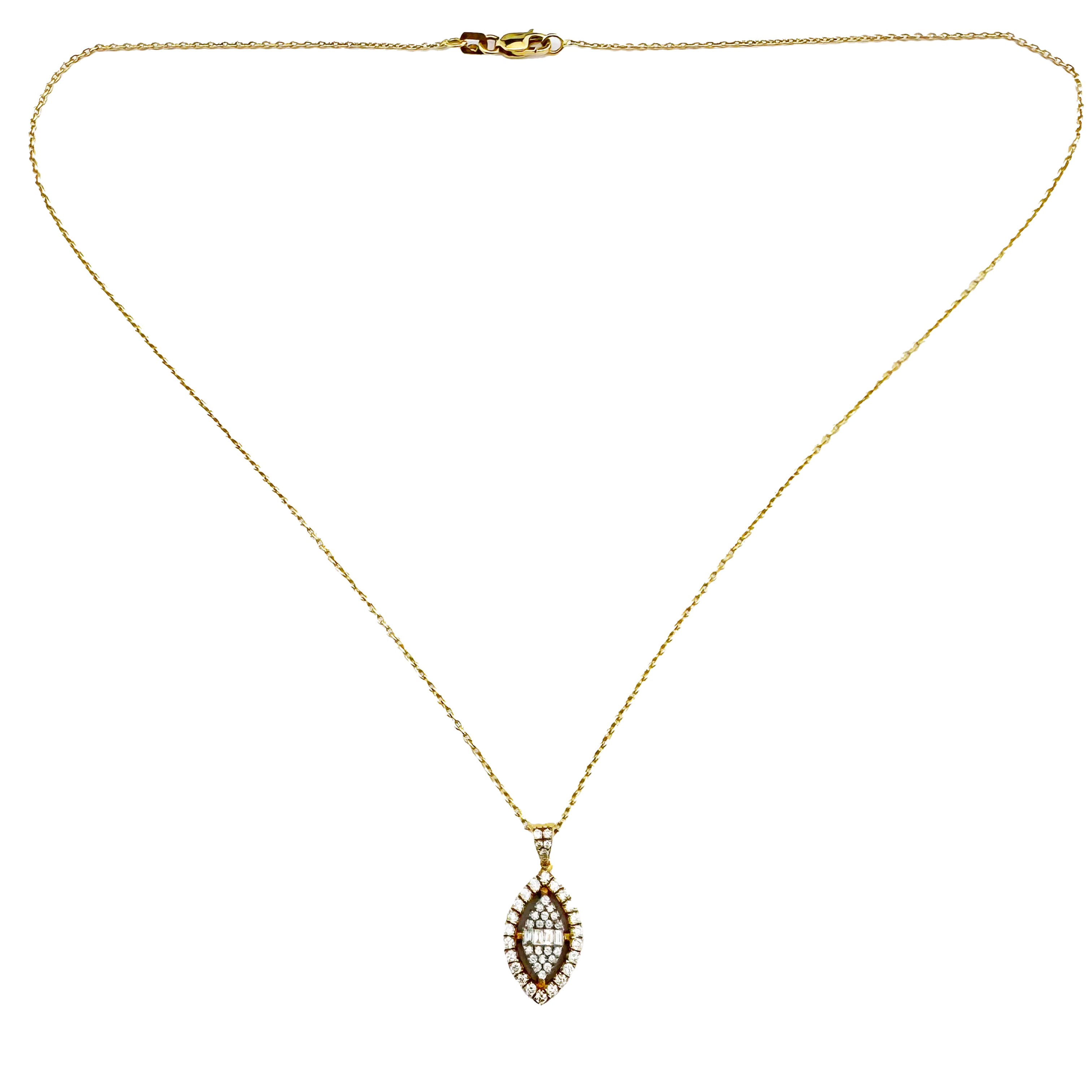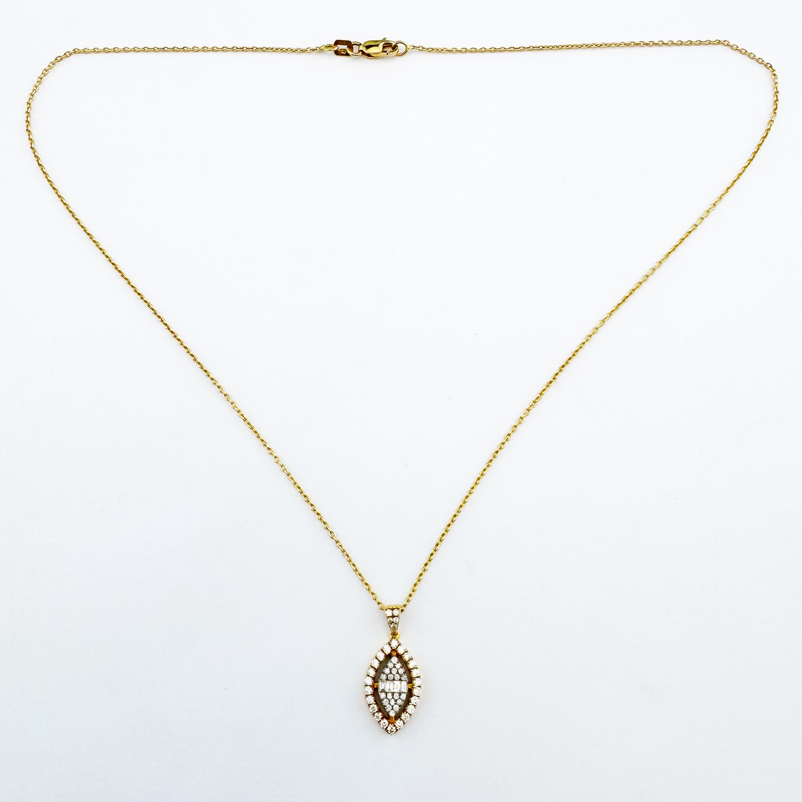 Design : Chaîne fine avec pendentif en forme de marquise entièrement pavé de diamants naturels.